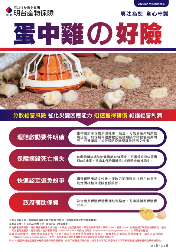保險_為提高營農保障,降低飼養家禽感染禽流感遭撲殺所致損失,踴躍投保家禽禽流感保險_1150106