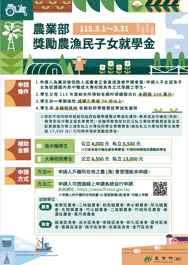 會務_114學年度第2學期獎勵農漁民子女就學金申請_1150223